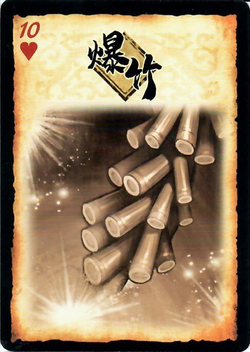 出牌阶段,对一名其他角色使用。目标角色获得1枚“爆”标记(当一名角色拥有3枚“爆”标记时,其受到3点火焰伤害并移去所有“爆”标记)。