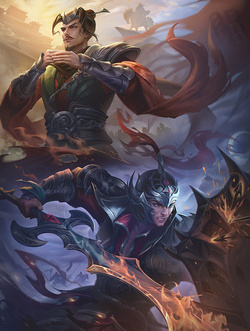 〖殉义〗:游戏开始时,你令一名其他角色获得“义”。当你或有“义”的角色造成/受到1点伤害后,若受伤角色/伤害来源不为另一方,另一方摸一张牌/弃置一张牌。当有“义”的角色死亡时,你可以移动“义”。