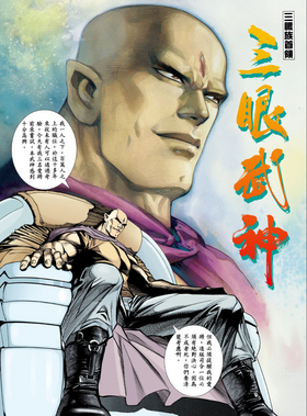 武男为救克豹、三眼等人折返回现场,用计与白愁周旋,以自己交出千军武神为条件要求白愁不要为难三眼族人,令三眼能够在千钧一发之际脱困并救下克豹等人。三眼称自己的手下已控制住白愁的妻子雪飞和她腹中还未出生的白不二,以此要挟白愁再和他决战,以17重天力量使出以绝世武学地狱战神为原型的绝招“三眼的战神”,成功对白愁造成威胁,迫使其打出当时最强的25重天力量,用白家风斩刀将三眼杀败。