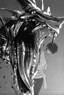 失去幻想杀手后,上条当麻的右臂变为天蓝色,身躯被天蓝色与柠檬黄的龙状外壳包裹——外形类似带翼的蜥蜴,拥有鳄鱼状的下颚、蝙蝠状的翅膀和粗大的尾巴。