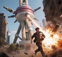 - 东方明珠防御塔:与蜜雪冰城和上海的刻板印象有关的梗,因为蜜雪冰城在大众认知中是个低端、便宜、接地气的品牌,与上海在大众认知中的高端、精致、上档次的刻板印象很不搭调,于是有网友将二者结合,创造出“在上海喝蜜雪冰城会被东方明珠攻击”“在上海外滩喝蜜雪冰城,结果东方明珠变成防御塔攻击我”等一系列包含蜜雪冰城和东方明珠的AI图,没想到此举直接引发了大规模“蜜雪冰城x东方明珠”AI图创作热潮。在此后网友们就开始拿不同地区的刻板印象来进行整活,首先是“防御塔文学”,广州塔、深圳平安国际金融中心等地标摩天大楼/高塔率先受到恶搞;如今更是变成了不仅限于上海的“地域刻板印象笑话大赏”,一时间各种AI图百花齐放。注意:绝大部分例子只是调侃开玩笑,并不含地域黑色彩。