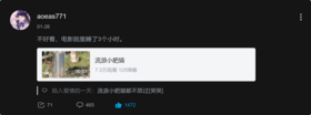 除此之外,在一些短视频平台,也有许多文案雷同的视频,内容皆有“我是不看流浪地球了,仨小时去了15趟卫生间,打算明天再来一趟,请问xx和xx(其他的电影)那个好看”之类。[1]顷之三遗矢矣!(不是)