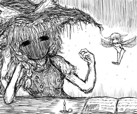 异形魔理沙听完后打算杀死美铃,但被小恶魔打断。美铃问小恶魔为什么回来了,小恶魔答到这是我的独断,却也说出了许多不明所以的话语,最后朝向美铃开了一枪后吞弹自杀。