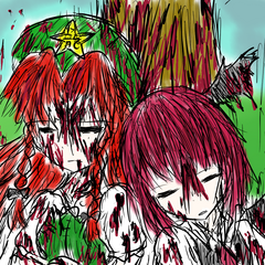 【所以我不是说了吗!!为什么不以妹妹大人为优先啊!?红美铃,都是你的错!?因为你,就连我都死了!!】【对不起,小恶魔...因为我也快死了所以...】