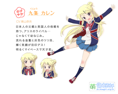 金发、灰色眼瞳的少女。制服的衬衫和其他4个人不同,并披着英国国旗花纹的外套。个性开朗好相处,很快就习惯了日本的学校生活。经常故意装傻而被阳子吐嘈。