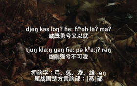 《九歌·国殇》原是楚国诗人屈原在楚国民间祭祀歌曲的基础上创作的祭祀保卫国土战死的将士的祭歌,收录于中国最早的浪漫主义诗歌总集《楚辞》和中国现存最早的诗文总集《昭明文选》中。作者在其基础上重新谱曲,并采用战国楚方言演唱。视频开头剪辑了电视剧《东周列国·春秋篇》片段。