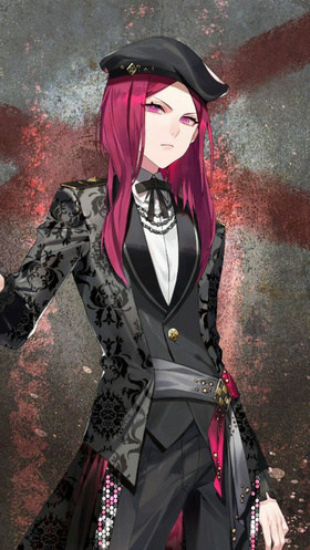 - 总是一脸不爽的中性美貌男子,拥有桃红色的中分长发。