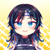 - 外貌:黑色狼尾鲻鱼头,有红、蓝、绿三色的挑染,蓝绿色眼睛,红色眼影,左耳戴缀有蓝色飘带的月牙形耳夹,右耳戴缀有红色符纸的圆形耳环,有红、黑、蓝、绿、紫五色的美甲。