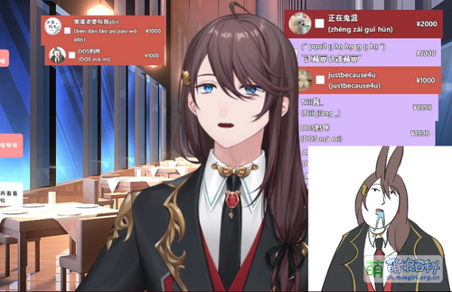 多次在直播中提到自己是在用私房钱打赏,发出两张消息截图,但依然有以下言论。*经常在推特上与其他Vtuber互动,甚至动用Overidea的资金去打赏其他Vtuber。曾因为看aqua直播而通宵。[8]