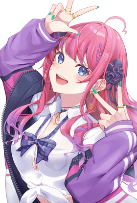 | 发色 | 上半粉发,发梢部分为紫红色 | |