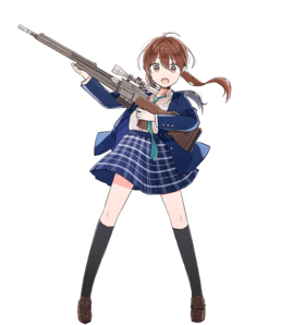 身高152CM。喜欢照顾别人,在教附近的小孩子枪械的知识。因此自己也慢慢地对枪产生了兴趣。开始认真学习。原本性格就很认真,所以领会得很快。