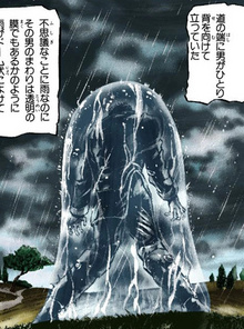 当波尔纳雷夫讲述他的妹妹雪莉是怎么死的时,他提到J·盖尔身上覆盖着某种透明防护罩,让他即使直接在大雨中也是完全干燥的状态。但原作J·盖尔在与主角团的战斗中都没使用过也没再提过,因此尚不清楚这是不是倒吊男的另一个能力。