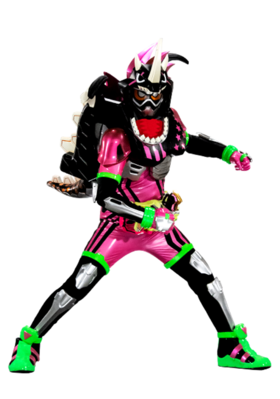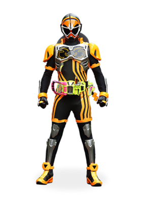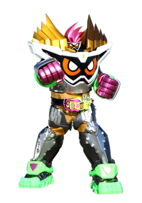 - 外形结合了Ex-Aid 动作玩家 等级二和假面骑士Ghost 俺魂的造型特征,能像Ghost一样漂浮飞行。