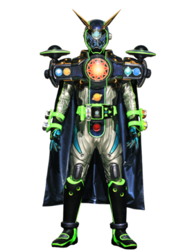 使用「超越驱动器()」装填「银河·未来驾驭表头()」后投影变身而成的最终形态。