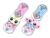 Heartful Communes (ハートフルコミューン) Cure Black与Cure White的全新变身道具,外表形似旋盖手机。也是梅普鲁和米普鲁苏醒后在虹之园的常见形态,通常被渚与穗乃香带在身边。 |