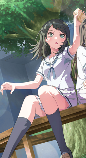 回到学校后的海铃为了避免被同学围观,一下课就溜走了,只有立希能找到她。在立希直接把书包甩到她脸上时能双手接住,仅靠嘴里叼着的吸管没让纸包奶冻饮料掉下来。立希小小埋怨了一下她和祥子组乐队的事儿,海铃也由此得知立希早就认识祥子。