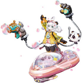 兰兰手中抱着的便是基础班哒,它是从小陪伴兰兰的“班哒朋友”,亦是所有衍生班哒的原型,是兰兰创造的第一只班哒,它的造型灵感来源干兰兰最喜欢的食物之一-一汤圆,它不仅外形上与汤圆相似,甚至会和汤圆一样软软糯糯地弹动。而坐在飞船驾驶舱的则是另一只班哒,它会驾驶都市内的一切载具,时常开着小飞船载兰兰出行。