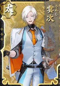 | 图鉴说明 | 鵜飼派、雲類とも呼ばれる刀のひとつ。雲次というのが僕の名前。 我是鹈饲派、也被称作云类的刀之一。云次是我的名字。 |