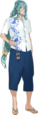 | 琉球王国王室祖传宝剑之一。 虽然刀身经推测是日本制,但其拥有独一无二的特色就在于以单手持为前提设计的短柄。 如果被他那迎风回浪般的口调给吸引过去的话,就会被拉进他的岛式时间步调里去。 | ||||