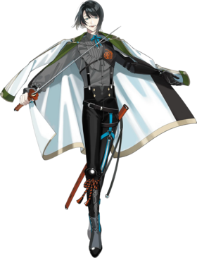 外套依旧是江独有的墨绿色军装,内番唯一一个穿短裤的存在,真剑可以看到脖子左下方有一个对应目钉孔的痣。