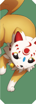 头上的黄色花纹呈V字状,将大号狐之助称为前辈,一共有两只,红色的为1号,蓝色是2号。[1]