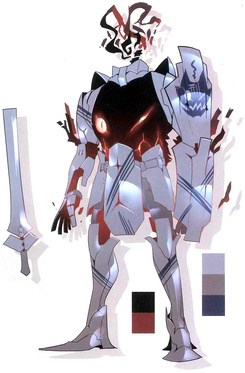 外观是一副缺失头盔的铠甲,且原因不明地带有猫猫的元素。