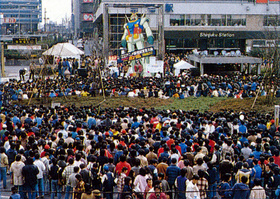 前来参加的人数远远超过了主办方的预想[2]。在活动开始前一天晚上,便有约350名粉丝选择彻夜等待。而到了2月22日当天,在新宿车站东口广场,超过15000名青年粉丝聚集在了现场,这完全让活动主办方始料未及。尽管活动现场极其拥挤,也有不少人选择cosplay到场,但现场的青年男女们都保持了极高的秩序意识。