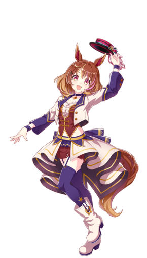 | 萌点 | 马娘、兽耳、真·马尾、挑染、耳环、礼帽、黑色连裤袜 | |