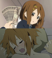 ![]() ![]() ![]() 在《K-ON!》第2季第2话中,轻音部5人 在此过程中,轻音部内部围绕这一行为的合理性及合法性产生分歧。 此时此刻轻音部部长田井中律果断挺身而出,打破僵局,手持十万日元,以