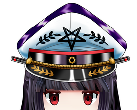 帽子上的倒五芒星是恶魔族的象征(德里亚联邦中大致分为人类与恶魔族,历史上人类栖息在农业区域,恶魔族则是在狩猎采集区域)