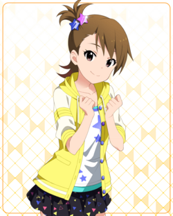 偶像大师百万LIVE登场偶像,《偶像大师 百万现场》中是Visual阵营,《偶像大师 百万现场 剧场时光》中是Angel阵营。双子姐妹印象色一样,是 #FFE43F。