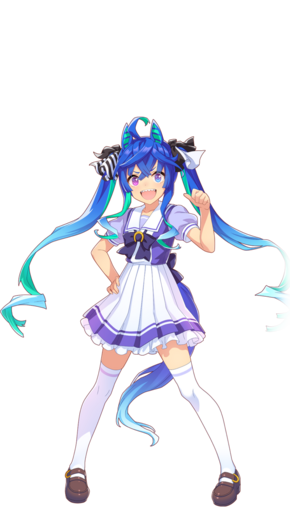| 萌点 | 马娘、兽耳、真·马尾、内层挑染、双马尾、呆毛、发带、紧身裤、短靴、玩偶、锯齿牙、萝莉、元气、笨蛋、无铁炮、胆小、第三人称己称 | |