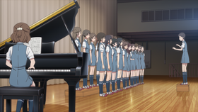 - 在高仓直子(后来的教导主任)高中时期,社团的名称还是“合唱部”,部长是坂井真昼,顾问是池崎赖(后来的校长)。坂井真昼和高仓直子正是在这个时候创作了混声三部合唱曲《心之旋律》。但不知从何时起改称了“声乐部”。