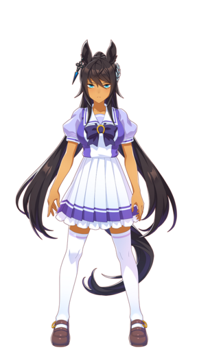 | 萌点 | 马娘、兽耳、真·马尾、单马尾、耳环、植物发饰、露脐装、长靴、长身、褐色皮肤、无口、工作狂、美国马娘、留学生 | |