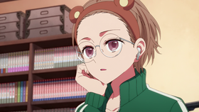 - 《东刃》舞台剧排练期间,陪同阿比子一起前往排练现场观摩。观看完演员排练后,阿比子对剧本表现出了强烈的不满,要求剧本全部重写,在赖子的好言相劝()下才暂时平静了下来。原作者的不满导致舞台剧的演出无法正常进行[2]。为了保证舞台剧顺利上演,阿库亚带领有马加奈、黑川茜和鸣岛梅尔特亲自登门拜访赖子,托赖子将一张舞台剧的门票转交给阿比子,希望借此帮助阿比子了解《东刃》所要上演的环绕式舞台,从而理解脚本家的意图。在阿库亚的帮助下,阿比子和脚本家GOA通过视频会议讨论对剧本进行了修改,《东刃》舞台剧的排练和演出也得以顺利进行。