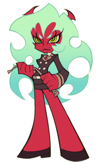 地上界の秩序を正すため魔界からやってきた、悪魔ハイクラスコマンダー・デイモン姉妹の姉。 履いているスキャンティを2丁のリボルバー型魔界兵器<ダブル・ゴールド・レーシータンガ>に変形させ戦う。
