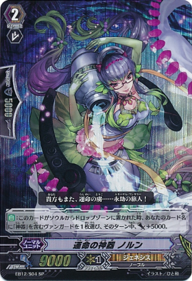 卡片战斗先导者(Card Fight!!Vanguard)部分当前主要录入负责人为 火鹰 同学,有问题可以到他的讨论页 用户讨论:EliseBero 留言。作为辅佐“创世”CEO的、出身于“永生蜜酒”的女神。神器「永劫的旅人」的使用者。作为“永生蜜酒”最古老的女神之一,在「尤克特拉希尔」诞生之前,就为诞生出她的大树浇水、培育。在那段时间,她完全没有原本喜好的收集情报的杂念,空闲时间都用来鉴赏世界各地收集而来的古书、魔法志及影片。在必须严厉以对之际,她代替过于温柔的「尤克特拉希尔」作为公司全体的监督者,对大家严厉以对。