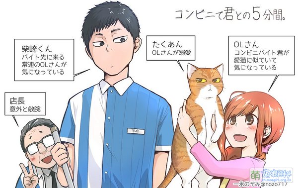 《在便利店与你的五分钟。》(コンビニで君との5分間。)是日本漫画家一永のぞみ创作的漫画。最初自2018年10月2日在Twitter上揭载,后转为在《YOUNG GANGAN》连载,至2021年11月19日完结。