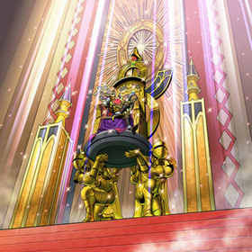 ●此卡变为通常怪兽(不死族·光·星10·攻1500/守2800),特殊召唤至怪兽区域(也视为陷阱卡)。自己场上存在“黄金卿埃尔德里奇”的情况下,进而可将场上的1只怪兽放回手牌。
