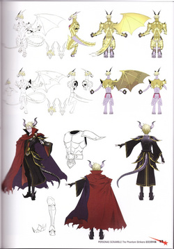 阴影状态下是自身小说中的魔王,有着淡淡的薰衣草色皮肤,下巴更锐利,金发尖角壮头发,头上有两个尖角。