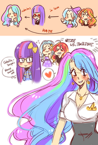 - 结局2:通过暮光的指导,再次成为大公主的学生,接受大公主的调教