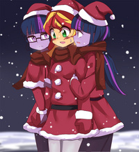 当暮光闪闪击败余晖烁烁时,魔法能量四溢,并引起了曾经被星璇驱逐到人类世界的三海妖的主意。EQG2中她们来到坎特拉高中,参与了音乐节,并且挑拨离间、控制人们。余晖通过以前在小马国的笔记本和暮光公主取得了联络。在主角们四分五裂之时,余晖烁烁将她们团结。在最后,六位主角与余晖烁烁一起使出了超越彩虹净化风暴的净化技能。从此新的主角偶像团体---M7诞生,余晖烁烁正式加入主角团队,成为彩虹音爆的吉他手。在这以后,夕晖经常用魔法笔记写信给暮光闪闪,并以朋友相称。