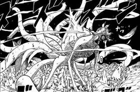 比上一形态更为壮硕,力量也更为强大。能够分出大量分裂体,还能用口中吐出的花状炮口发射比自己还大的尾兽玉。