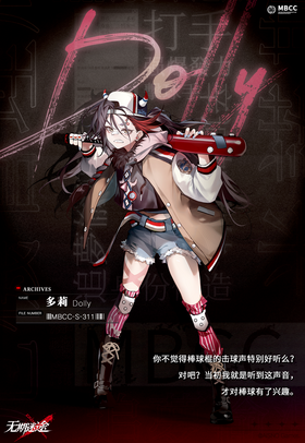 - 异能名称【狂热躁动】。以情绪激动或多次挥棒为异能激发条件,能增强多莉力量,减少痛感,让球棒拥有强劲的击飞效果。