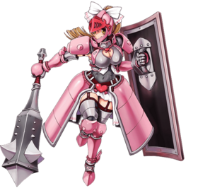 ベルニス是一个女骑士辈出的家庭的女儿。她身为重步兵,用粉色的铠甲包裹全身,而且手里的大盾也和自己娇小的身材格格不入。她认为自己能有今天这般的活跃全是拜这身祖传下来的铠甲所赐,所以日常生活中也完全不会有把它卸下来的念头。其实在面对熟人的时候她也想过把铠甲脱下来以便更加亲近一些。