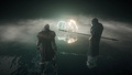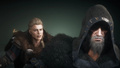 艾沃尔以袖剑刺入科约特维的胸膛杀死他之后,她的意识被抽离身体,来到了一片黑暗当中。艾沃尔缓缓站起身,脚下是一片沼泽,四周立着无数枝干扭曲的枯木,远处偶尔传来断断续续的乌鸦啼鸣。手持冈格尼尔的奥丁正靠在不远处的一棵枯木下看着她,并且科约特维的意识也来到了这里。 奥丁一言不发地从科约特维身后缓缓走向艾沃尔,目光锐利地上下审视着科约特维,并在他对着艾沃尔出言不逊时将冈格尼尔杵向地面,伴随着闪电与惊雷召唤出一股无形的巨大力量压向科约特维,让他口吐鲜血,痛苦地跪在了地上。奥丁走到艾沃尔身边时,被科约特维激怒的艾沃尔一把从奥丁手中抢过冈格尼尔,用力杵向地面,在科约特维脚下召唤出了一根破土而出的枯木,刺穿了他的身体。随后,奥丁从艾沃尔手中接过冈格尼尔,并看着一只黑鸦从科约特维口中飞出,将一枚吊坠放到了艾沃尔手心里。 |
