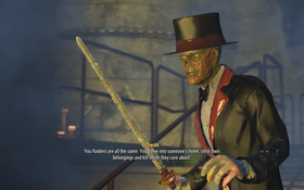 时过境迁,2287年的儿童王国,理智尸鬼只剩奥斯瓦德一人,而他还不知道瑞秋其实已经自杀了。他把和自己朝夕相处的员工们安排到了园区的各个角落,给他们化妆成让人害怕的模样,同时用炮塔、地雷和遍布园区并连接上核废水的喷雾器来阻挡入侵。