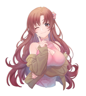 穿着粉色开胸高领毛衣(露出北半球)及褐色外套(但是从来没有好好穿过,一般都会半脱至肘关节,大胆地露出粉嫩的香肩略显色气)