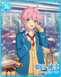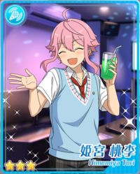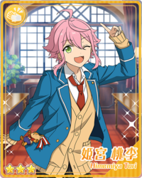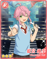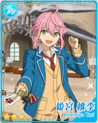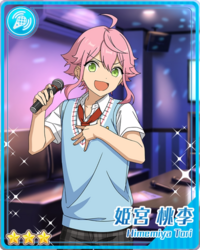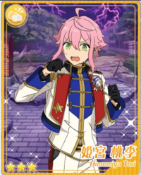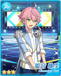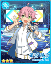 姬宫家的长子,家境优渥。伏见弓弦是从他儿时就侍奉左右的执事兼照顾者以及顾问。性格开朗纯真。自尊心很强,但自己也明白努力的必要性,为此正在纠结苦恼。歌声轻快讨喜,表演风格十分可爱。所属于「STARMAKER PRODUCTION」旗下的「fine」。为了成为能被下一代所憧憬的偶像,对于「fine」的新形态,主动提出方案并思考实现方法。