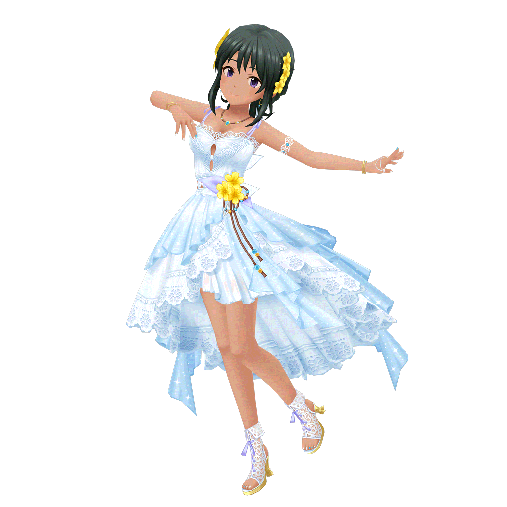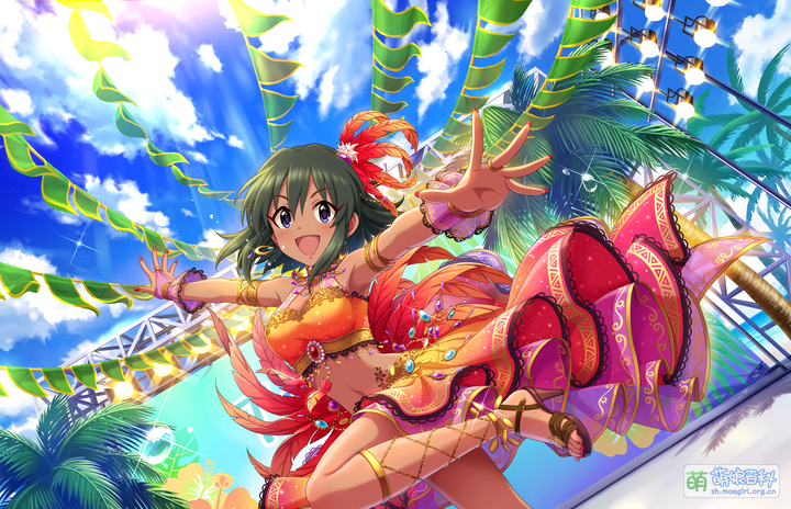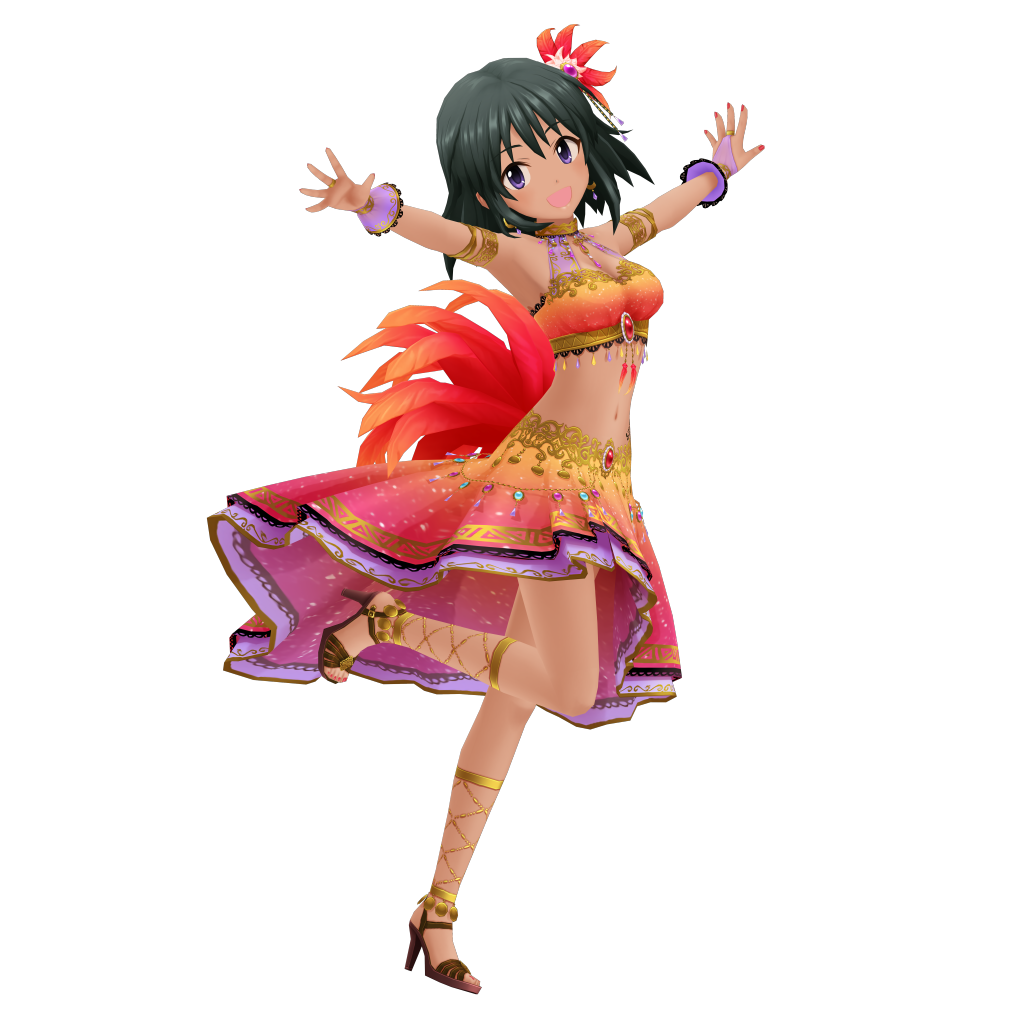 性格活泼,天真无邪,对制作人充满好感。不知道从哪里学来了很多奇奇怪怪的日语,有时会说出一些不得了的话。比如曾邀请五十岚响子和制作人一起三人结婚,还有一次问制作人她是不是该打扮成“新妻”、“幼妻”或是“团地妻”。。拿手舞蹈是肚皮舞。